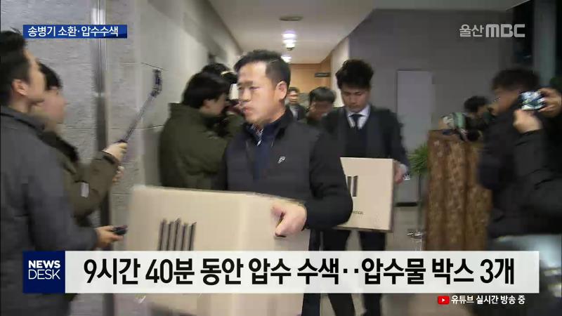 ◀ANC▶ 검찰이 김기현 전 울산시장 측근 비리 첩보 제보자로 지목된 송병기 울산시 경제부시장을 전격 소환했습니다. 참고인 신분이기는 했지만, 같은 시각 집무실과 자택 등에 대한 압수 수색도 동시에 전격적으로 이뤄졌습니다. 울산시장 선거 개입을 위해 제보를 했는지에 대해 검찰은 집중적으로 들여다보고 있습니다...