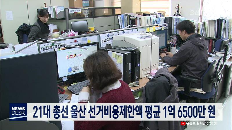 21대 총선 울산 선거비용제한액 평균 1억6500만 원