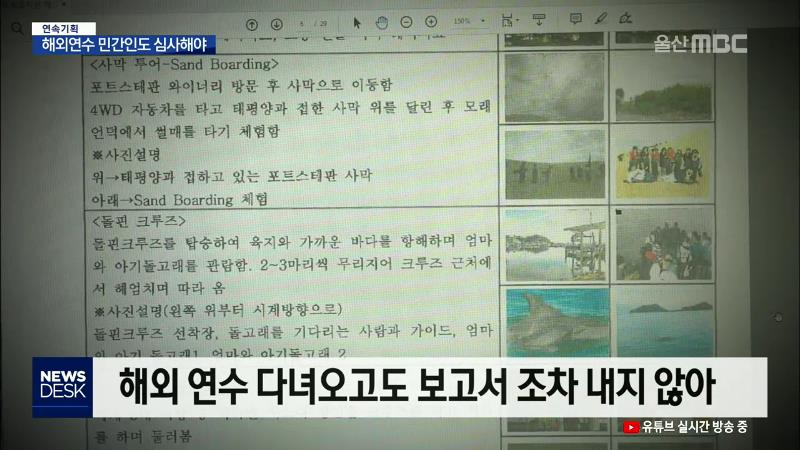 ◀ANC▶ 민간인 해외연수의 문제점을 들여다 보는 연속보도, 마지막으로 허술한 민간인 해외연수 관리실태를 들여다 봅니다. 지방의원들의 해외연수는 형식상이지만 감시망속에서 실시되는 반면, 민간인들은 시민의 세금으로 해외연수를 가지만 제대로 된 심사 조차 받지 않습니다. 서하경 기자입니다. ◀END▶ ◀VCR▶ ...