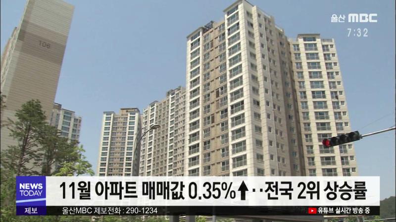 (경제브리핑)11월 울산 아파트값 상승률 전국2위