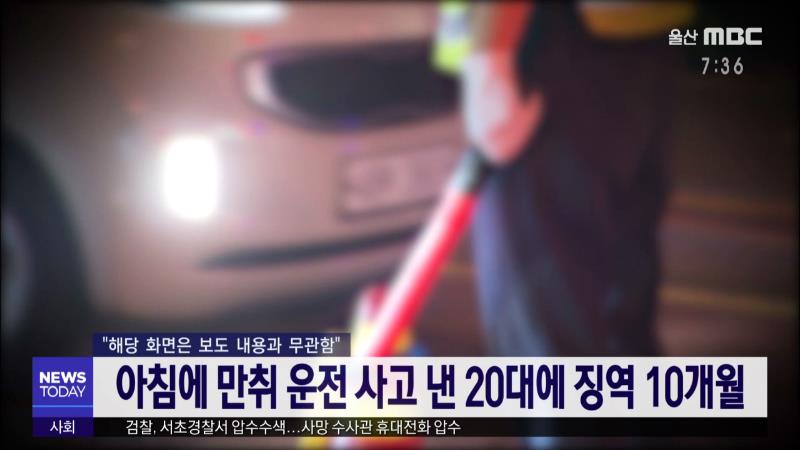 아침에 만취 운전 사고 낸 20대에 징역 10개월