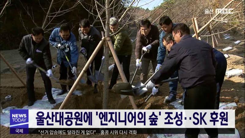 울산시 공장장협의회가 주관하고 SK울산콤플렉스가 후원한 '엔지니어의 숲' 조성 행사가 오늘(12/2) 울산대공원에서 열렸습니다. 참가자들은 '엔지니어의 숲' 표지석 제막 후 참여 엔지니어 이름이 표기된 간판을 설치하고, 1천㎡ 부지에 은행나무 120그루를 심었습니다.//