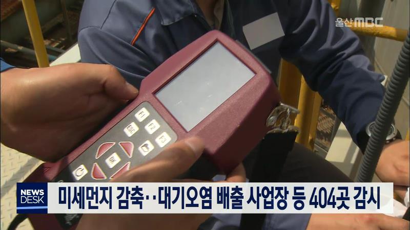 울산시가 미세먼지 배출 감축을 위해 대기오염물질 다량 배출 사업장과 건설공사장 404곳을 집중 감시합니다. 이를위해 울산시는 굴뚝자동측정기기 감사를 강화하고 실시간 유해 대기 측정 차량과 대기오염물질 검체팀의 오염도 검사, 구·군별 민간합동 배출업소 특별점검 활동 등을 벌입니다. 이와함께 기초생활수급자 등 ...