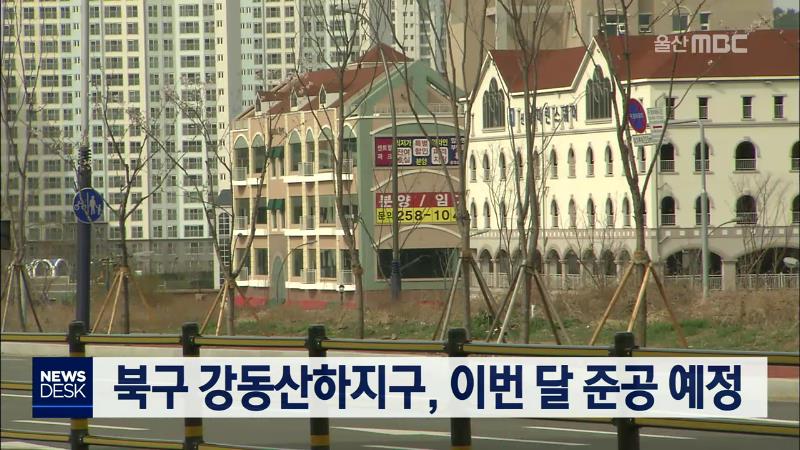 북구 강동산하지구가 공사를 마무리하고 이번달(12월) 준공될 예정입니다. 현재 울산시와 울산경찰청에 이관될 시설물의 마무리 공사가 진행 중인데 도로 차선 도색과 신호제어기 교통센터 연계 등이 해결되지 않은 것으로 전해졌습니다. 북구청은 재도색 구간의 70% 이상 마쳤다며 남은 공사가 마무리되는 대로 시설물 이...