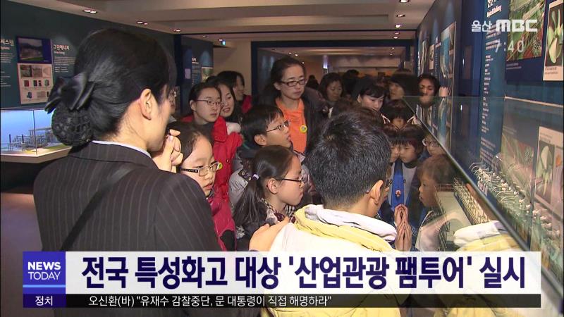 울산시가 전국 특성화고 견학 관계자들을 초청해 산업관광 프로그램 팸투어를 오늘(11/28)과 내일 이틀 동안 진행합니다. 울산시는 현대중공업과 현대자동차, 에쓰오일 등 산업현장과 대왕암공원, 태화강 국가정원 등 지역 명소를 연계한 견학 코스를 소개하고 단체방문 지원책을 알릴 계획입니다.//
