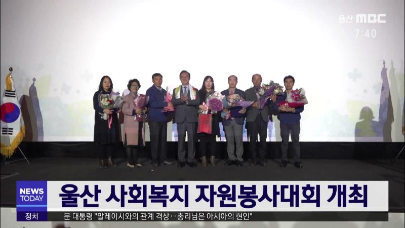 2019년 울산사회복지 자원봉사대회가 오늘(11/28) CGV 울산삼산점에서 열렸습니다. 이 자리에서 울산시립노인요양원 이일우 씨 등 14명이 우수 자원봉사자 표창을 받았고, 울산시각장애인복지관은 우수 관리센터로 선정돼 표창을 받았습니다 . 현재 울산의 자원봉사자는 25만9천8백여 명이며 이들의 자원봉사 활동 시간은 1...