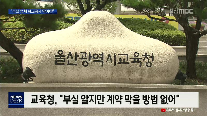 ◀ANC▶ 학교 건설을 맡은 건설사가 공사대금을 압류당해 공사 차질이 빚어지고 있습니다. 교육청은 이 업체의 자금 사정을 알고 있었지만, 입찰을 막을 방법이 없다 보니 알면서도 공사 계약을 맺을 수 밖에 없었다고 밝혔습니다. 이돈욱 기자입니다. ◀END▶ ◀VCR▶ 북구 송정지구에 내년 개원 예정이던 제2송정유치...