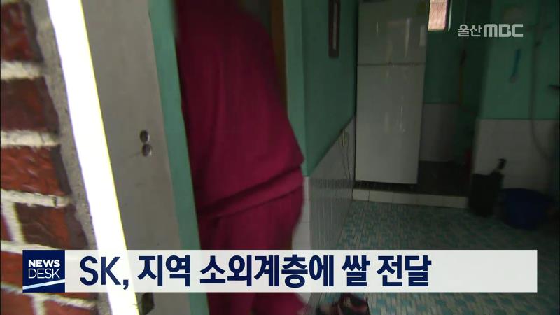 SK 울산 콤플렉스는 오늘(11\/26) 청량농협 농업인유통센터에서 5천만 원 상당의 쌀 1천758포를 지역 소외계층에게 전달했습니다. 오늘 전달된 쌀은 울산 지역 저소득계층 808세대와 독거노인 310세대, 사회복지시설과 경로당 등에 전달될 예정입니다.