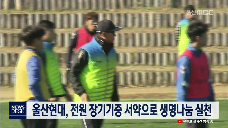 울산현대축구단이 구성원 전원이 장기기증 서약과 함께 생명나눔을 실천하고 있습니다. 울산현대 선수단과 코칭스태프, 사무국 구성원전원은 물론 올시즌 새로 합류한 외국인 선수까지 장기기증을 약속했습니다. 울산현대는 리그 최종전인 다음달 1일 포항과의 경기에서 생명나눔 홍보부스를 운영하고 장기기증 관련 체험 ...