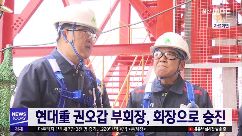 현대중공업그룹은 오늘(11\/19) 권오갑 부회장을 회장으로 승진하는 등 임원 인사를 단행했습니다. 권 회장은 지난 1978년 입사해 현대오일뱅크 초대 사장과 현대중공업 대표이사 등을 지냈고 지난 2016년부터 현대중공업지주 부회장을 맡아 왔습니다. 이번 인사에서 정기선 현대중공업지주 부사장 등 대부분의 임원과 계열...