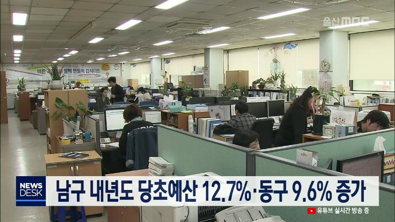 .남구 내년도 당초예산 12.7%·동구 9.6% 증가