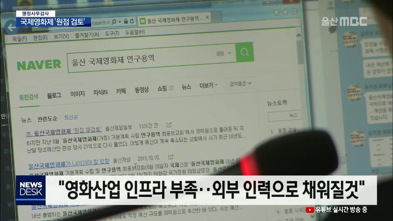 ◀ANC▶ 오늘(11\/18) 열린 시의회 행정사무감사에서는 내년 8월 개최가 불투명해진 울산국제영화제가 집중 거론됐습니다. 송철호 시장의 공약이라는 이유로 밀어붙이다간 세금만 낭비하는 1회성 축제가 될 것이라는 지적입니다. 최지호 기자. ◀END▶ ◀VCR▶ 송철호 시장이 공약으로 내건 울산국제영화제는 내년 8월 ...