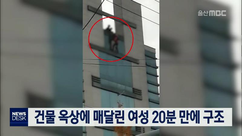 오늘(11\/17) 오후 4시 20분쯤 남구 삼산동의 한 건물 8층 옥상에서 여성 한 명이 외벽에 매달려 소동을 벌이다 20분 만에 소방당국에 구조됐습니다. 경찰은 이 여성이 음주상태는 아니었다며 건물 옥상에 올라가게 된 이유 등 정확한 경위를 조사하고 있습니다.\/\/\/