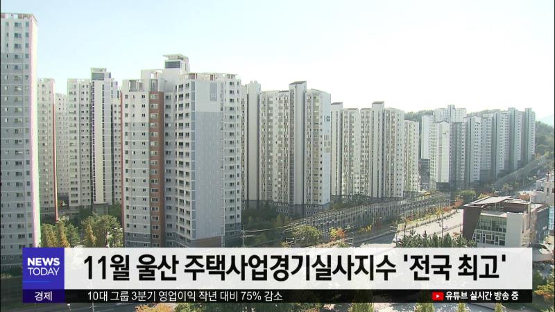 조선업 반등 전망에 따른 기대감으로 울산의 주택사업 경기가 회복될 것으로 전망됐습니다. 주택산업연구원에 따르면 11월 울산의 주택사업경기실사지수 전망치가 100을 기록하며 전달보다 17.4포인트가 올라 전국 최고치를 기록했습니다. 반면, 전국 전망치는 73.4를 기록하며 전달보다 9.2포인트 하락했습니다. \/\/