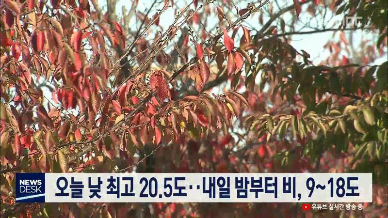 오늘 낮 최고 20.5도..내일 밤부터 비, 9~18도