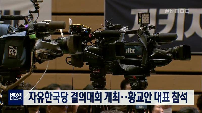 자유한국당 울산시당은 오늘(11\/16) 남구 야음동 대현체육관에서 고위공직자비리수사처 저지와 국회의원 정원 축소를 위한 결의대회를 열었습니다. 오늘 울산을 찾은 황교안 대표는 특강을 통해 야당이 강행하고 있는 패스트트랙 법안과 현 정부 실정 등을 강도높게 비판했습니다. 또 박맹우 사무총장이 선거법, 정갑윤 울...