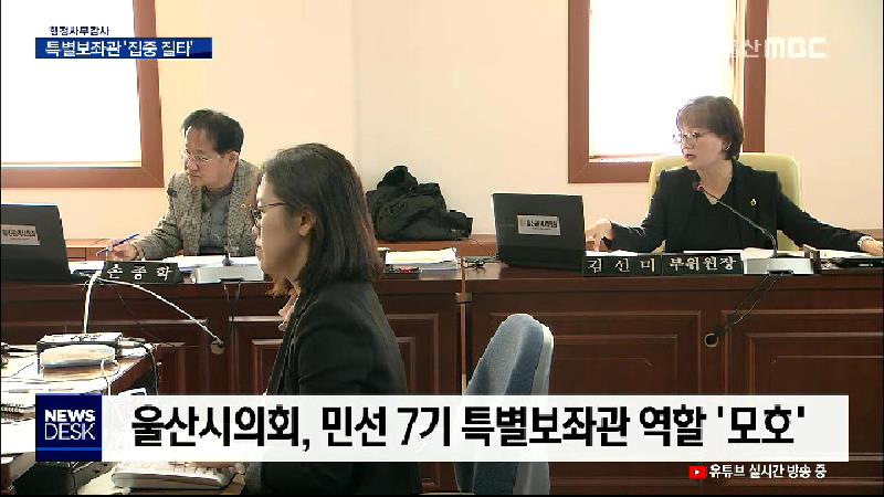 ◀ANC▶ 오늘(11\/15) 열린 시의회 행정사무감사에서는 민선 7기에 임명된 특별보좌관에 대한 역할론과 특혜 시비가 불거졌습니다. 또 특보가 지나치게 많은 업무추진비를 사용하고 있어 특혜라는 지적입니다. 최지호 기자. ◀END▶ ◀VCR▶ 민선 7기 송철호 시장이 임명한 특별보좌관은 4명입니다. CG> 3급 부이사관급...