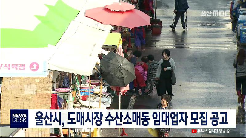 울산시는 오늘(11\/15) 농수산물도매시장 수산소매동 임대업자 모집 공고를 냈습니다. 입찰 대상 점포는 수산소매동 74개로 허가 기간은 5년입니다. 입찰 마감은 25일까지이며, 26일 개찰하면 점포주가 결정됩니다. 울산시는 자세한 계약 조건은 공매 사이트인 '온비드'를 참고할 것을 당부했습니다. \/\/