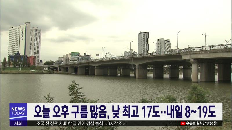 오늘 오후부터 구름 많음, 낮 최고 17도..내일 8~19