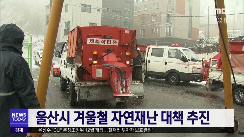 울산시는 내일부터(11\/15) 내년 3월 15일까지 4개월 동안 '겨울철 자연재난 종합대책'을 추진합니다. 시는 시내버스 124개 노선, 569km 구간의 도로 제설에 필요한 염화칼슘 등 제설 자재와 장비를 사전에 확보하고, 제설 전진기지 34곳을 지정해 폭설 피해에 대비하기로 했습니다. 또, 이달 말까지 버스 승강장에 방풍시...