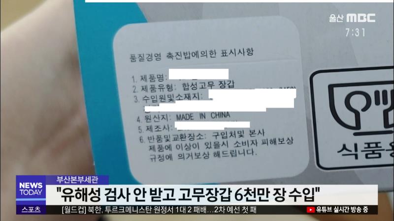 ◀ANC▶ 요리할 때 쓰는 흰색 고무장갑..아십니까? 요리하는 영상, 일명 '쿡방'에서 요리사나 인터넷 BJ가 이 장갑을 쓰는 모습 많이 보셨을 텐데요. 이 장갑은 수입할 때 반드시 식품의약품안전처 신고와 유해성분검사를 받아야 하는데, 마음만 먹으면 얼마든, 이 검사절차를 피해 수입할 수 있는 것으로 확인됐습니다. ...