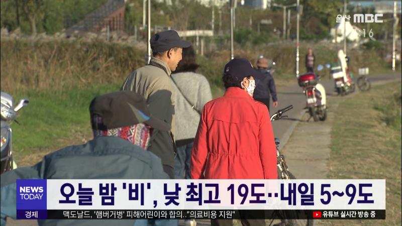 울산은 오늘(11\/13) 기압골의 영향을 받아 차차 흐려져 밤에는 5mm 미만의 비가 예상됩니다. 낮 최고 기온은 18도로 어제와 비슷하겠습니다. 수능일인 내일은 대체로 맑겠으나, 기온이 아침 최저 5도 낮 최고 9도의 분포를 보이면서 낮 최고 기온이 평년보다 7도나 낮겠습니다. 울산앞바다는 오늘 오후부터 강한 바람과 함...