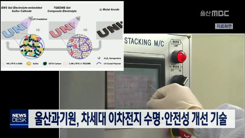 유니스트 이상용 에너지및화화공학부 교수팀이 차세대 이차전지로 꼽히는 '리튬-황 전지' 수명과 안전성을 개선하는 기술을 개발했습니다. 이 교수팀은 글자나 그림을 사물에 인쇄하듯 전지를 만들어 내는 '프린팅 공정'과 전지 수명 감소를 해결한 '이중층 고분자 전해질'이 핵심 기술이라고 밝혔습니다. 리튬-황 전지는 ...