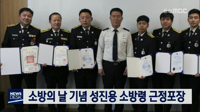 울산소방본부는 제57주년 소방의 날을 기념해 소방 발전 유공자에 대한 정부 포상과 시장 표창 수여식을 열었습니다. 이날 성진용 울산소방본부 지방소방령은 근정포장을, 추연두 지방소방령은 국무총리표창을 받는 등 7명이 상을 받았습니다. 정부는 매년 소방의 날을 기념해 소방 발전에 기여하고 소방 활동으로 국민 생...