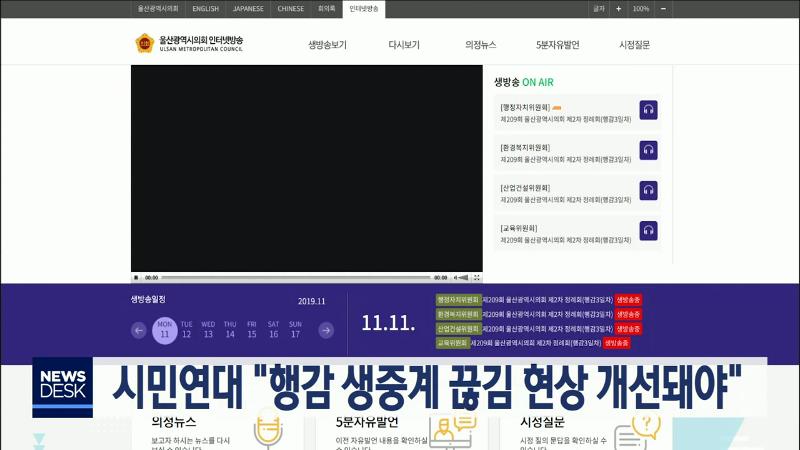 울산시민연대는 행정사무감사와 관련해 생중계 방송 상태를 개선하고 당일 회의록을 즉각 공개할 것을 요구했습니다. 시민연대는 시의회 홈페이지에서 실시간 행정사무감사 상황을 중계하고 있지만 끊김 현상이 자주 발생해 질의응답 내용을 파악하기 힘들고 회의록 공개도 늦어 회의내용을 파악하기 힘들다고 토로했습니다...