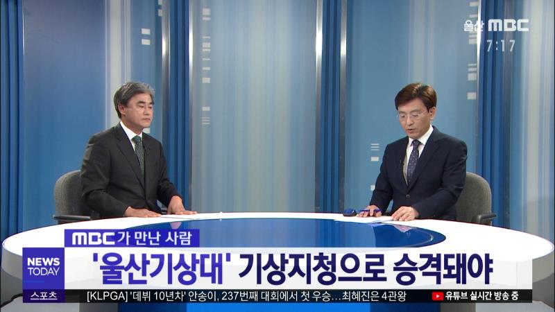 · ◀ANC▶ 정확한 기상 예보의 중요성이 강조되면서 부산지방기상청 산하 울산기상대를 기상지청으로 승격해야 한다는 목소리가 커지고 있습니다. 울산기상지청 승격을 위한 범시민추진 위원회도 구성돼 활동에 들어갔는데요, MBC가 만난 사람 오늘은 울산기상지청 승격 범시민추진위원회 김형석 위원장입니다. 위원장님 ...