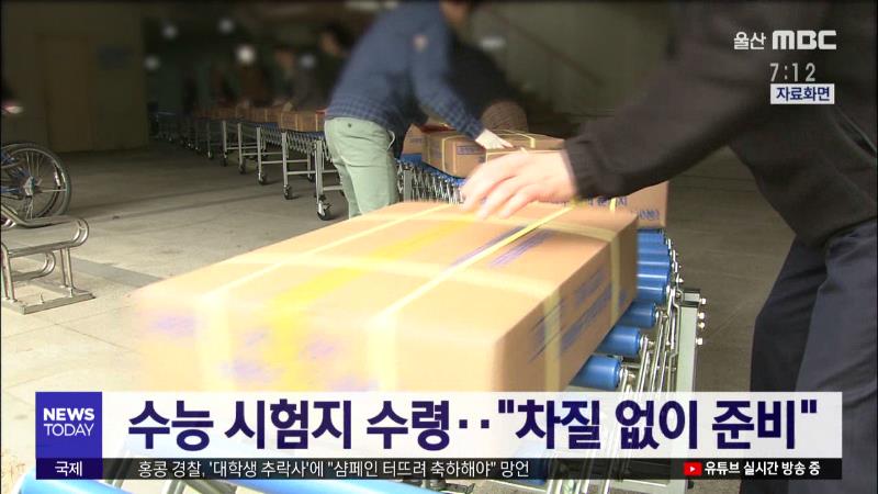 2020학년도 대학수학능력시험이 나흘(사흘) 앞으로 다가온 가운데 내일(11\/8) 울산시교육청에 수능 시험지가 배송됩니다. 올해 울산 지역 수험생은 지난해에 비해 1천 4백여 명 감소한 1만1천773명으로 26개 고사장에서 시험을 치를 예정입니다. 울산시는 수능시험 당일인 14일 수험생 편의를 위해 교통상황실을 운영하며,...