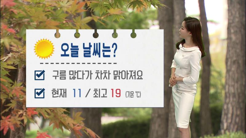 1) 현재 울산은 구름 많은 날씨를 보이고 있습니다. 낮부터는 차차 맑아지겠는데요, 현재 울산의 기온은 11도를 나타내고 있고, 한낮 기온은 19도로 어제와 비슷하겠습니다. 2) 내일은 외출하실 때 오늘보다 더 따뜻하게 입으시기 바랍니다. 기온이 조금씩 내려가고 있는데요, 북서쪽에서 찬 공기가 유입되면서 밤사이 기...