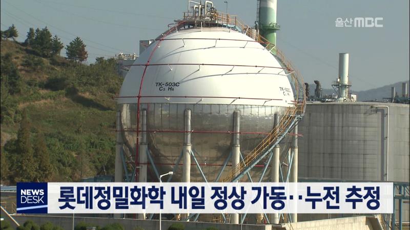 어제 정전(11\/4)으로 공장 가동이 멈췄던 롯데정밀화학은 오늘(11\/5) 복구작업을 거쳐 내일(11\/6)부터 정상가동된다고 밝혔습니다. 한전측은 매암동 송전선로 일부 구간의 누전으로 정전이 발생한 것으로 보고 조사를 계속하고 있습니다. 롯데정밀화학은 이번 정전으로 30억원의 피해를 입었으나 한전이 정전에 따른 손...