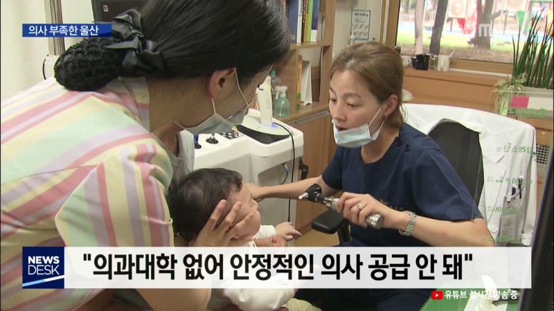 ◀ANC▶ 울산지역의 인구 10만 명당 의사 수가 150명도 채 안 돼 전국 시도 중 꼴찌 수준인 것으로 나타났습니다. 울산에서 배출되는 의사도 없고 울산에서 일하겠다는 의사를 구하기도 갈수록 어려워지고 있습니다. 유희정 기자. ◀END▶ ◀VCR▶ (투명)지난해 울산지역의 인구 10만 명당 의사 수는 149.4명. (CG)300명...