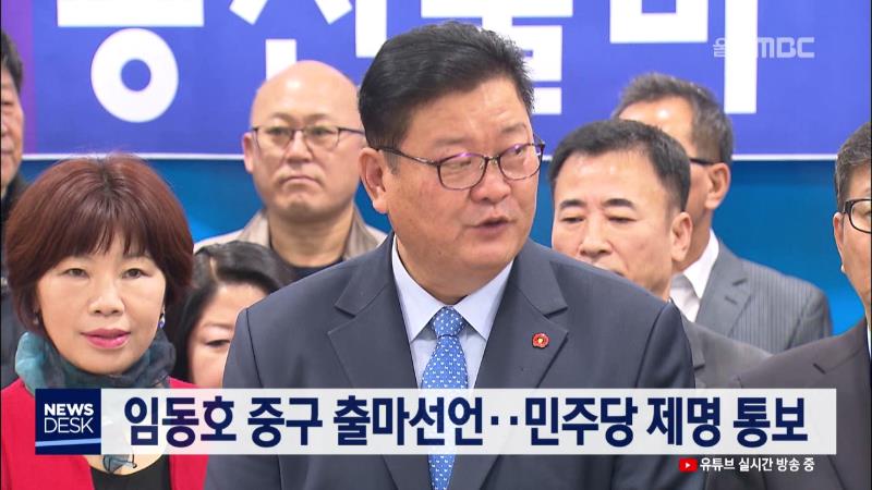더불어민주당 임동호 전 최고위원이 오늘(11\/4) 기자회견을 갖고 내년 총선에 민주당 후보로 중구에 출마한다고 선언했습니다. 반면 더불어민주당 울산시당 윤리심판원은 오늘(11\/4) 임 전 최고위원이 쓴 자서전에 당의 명예를 실추시키는 내용이 있다며 제명을 공식 통보했습니다. 이에 대해 임 전 위원은 시당의 징계 ...