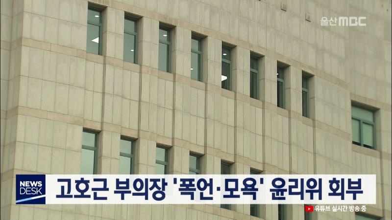 울산시의회가 고호근 부의장을 의사진행 방해와 폭언 등의 사유로 윤리특별위원회에 정식 회부했습니다. 윤리특위는 전체 시의원의 5\/1 이상, 즉 5명 이상이 요청하면 개최되는데 이번에 7명이 징계를 요청했습니다. 고 부의장은 지난달 15일 행정자치위원회 회의에서 김선미 의원의 의사진행이 원만하지 못하다며, 위원장...