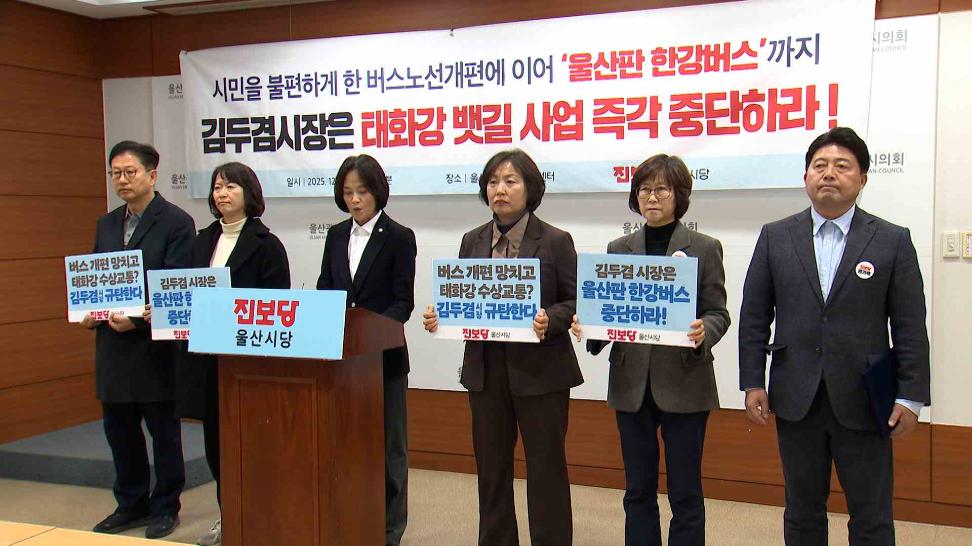 진보당 울산시당은 오늘(12/8) 기자회견을 열고 울산시가 추진하는 태화강 뱃길 수상택시 사업 중단을 요구했습니다.진보당은 초기 비용 48억 원, 매년 20억 원의 운영비가 드는 수상택시 사업은 잦은 고장과 운항 차질, 환경 문제 등으로 비판을 받는 한강버스와 다름없는 전시 행정이라고 주장했습니다.이에 대해 울산시...