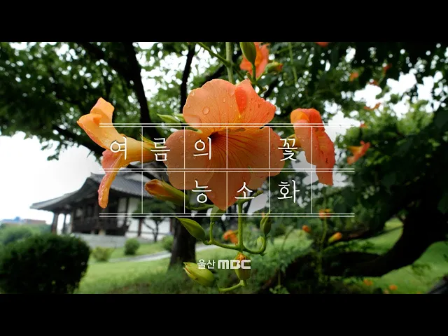 울산 동헌 한편에 주황빛 능소화가 활짝 피었습니다. 능소화는 7월부터 9월에 피는 꽃으로 장마와 태풍을 견뎌내고 핍니다. 한줄기 넝쿨 위로 주렁주렁 달려있는 능소화. 동백처럼 꽃잎이 통째로 떨어지는 것도 특징입니다. (영상취재 전상범)