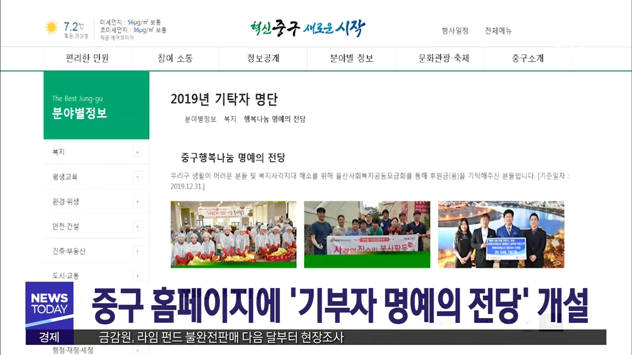 중구청이 홈페이지에 '행복나눔 명예의 전당'