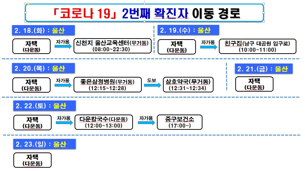 불필요한 확진자의 동선 및 개인정보 공개로 인한 사생활 침해 및 2차 피해 등을 방지하기 위해 관련 게시물에 대해 조치를 취해 줄 것을 요청하오니 적극 협조하여 주시기 바랍니다.