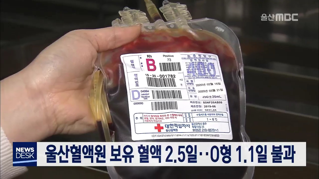 현재 보유한 혈액이 2.5일분에 불과하며,