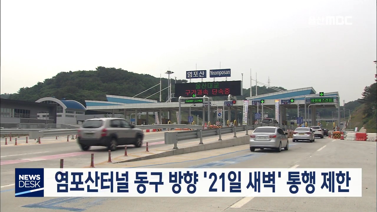 염포산 1·2터널 동구 방향의 차량 통행이