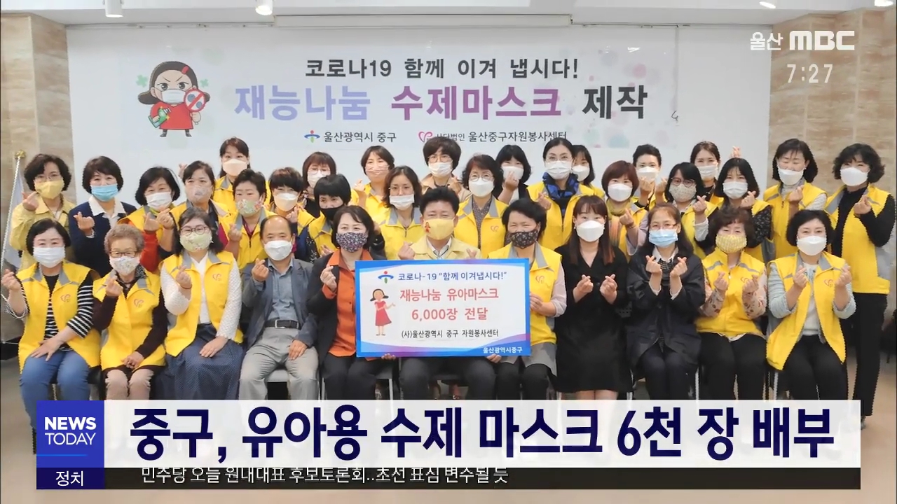 유아용 수제 면 마스크 6천 장을 배부했습니다.