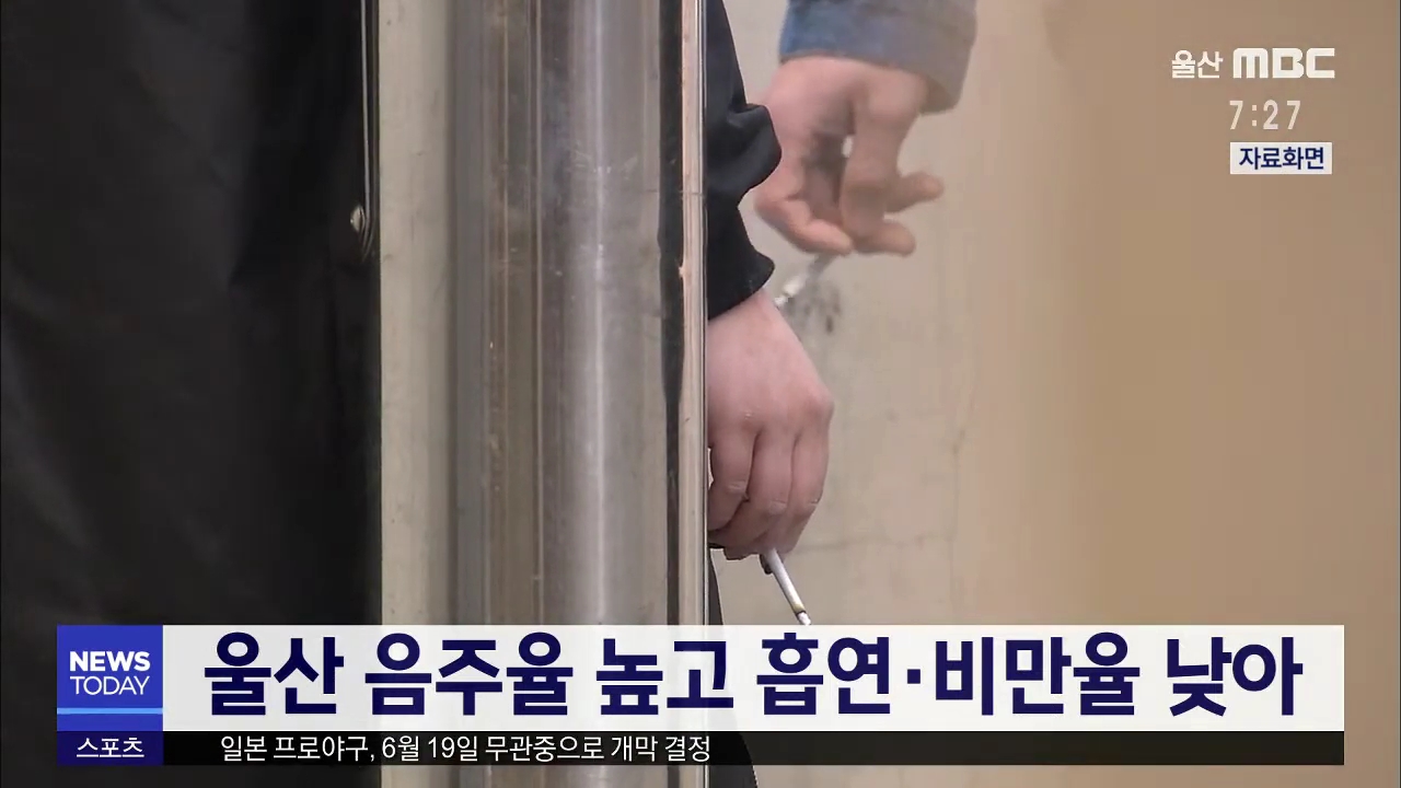 지난해 울산시민 음주율이 전국 평균보다 높고 흡연율과 비만율은 낮은 것으로 나타났습니다.