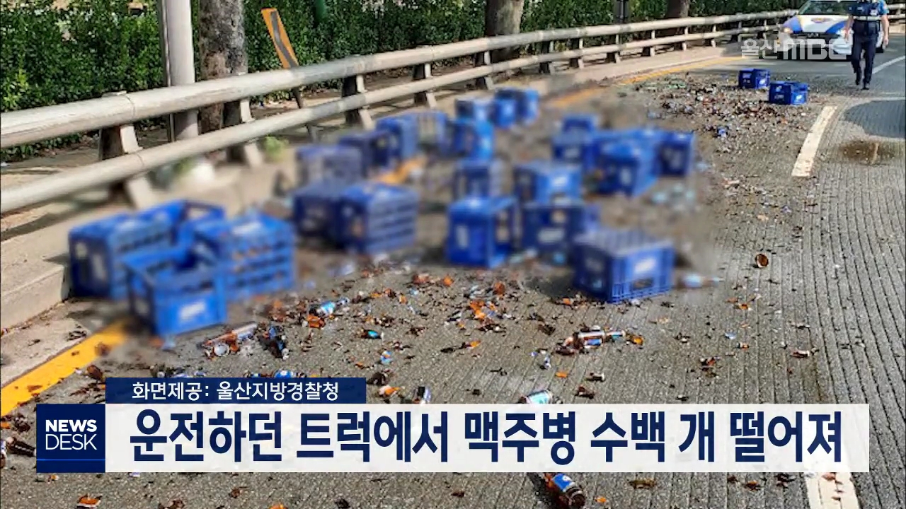 향하던 2.5톤 트럭에서 맥주병 수백 개가