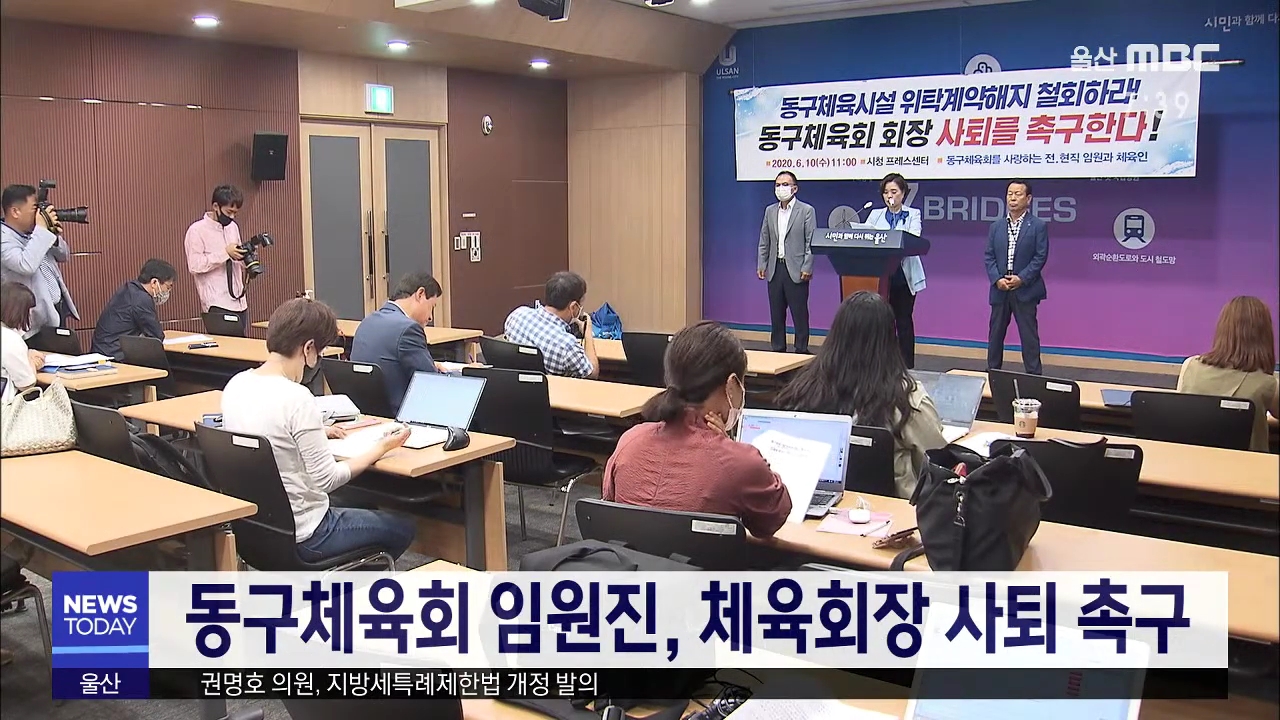 최해봉 동구체육회장의 사퇴를 요구했습니다.