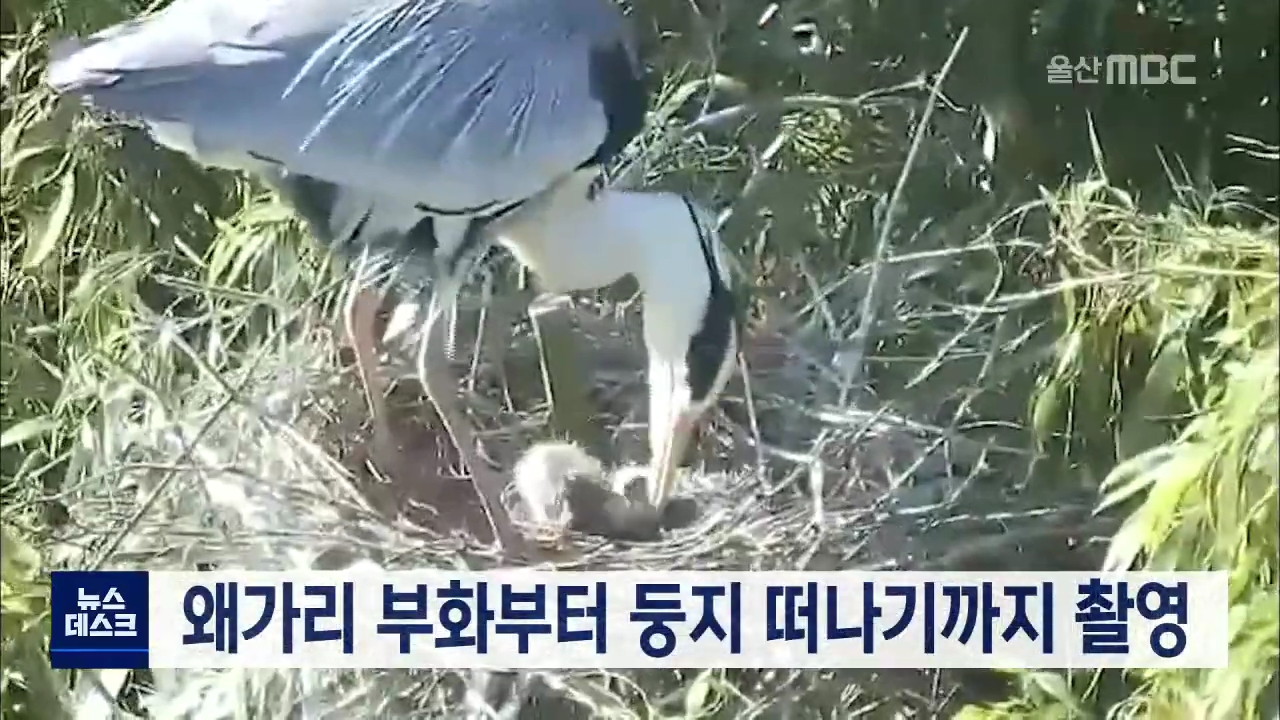 태화강에서 왜가리 2마리가 부화해서 둥지를