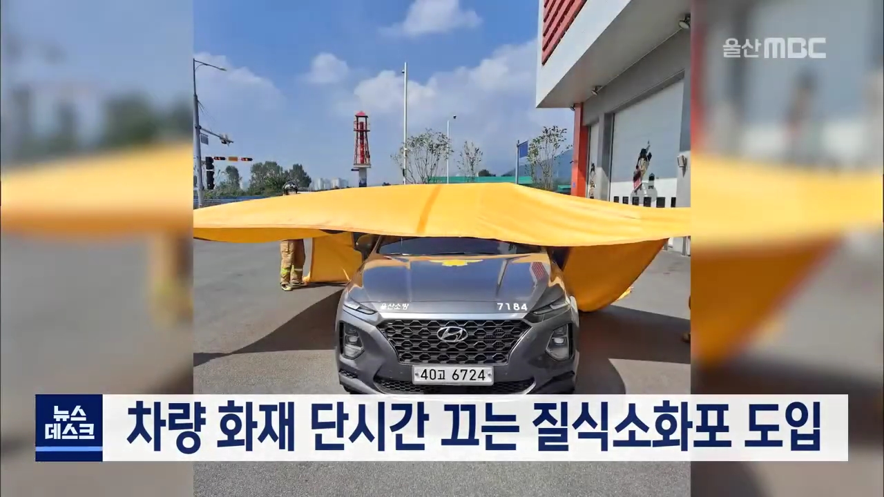 질식소화포는 불이 난 차량에 불연성 재질의