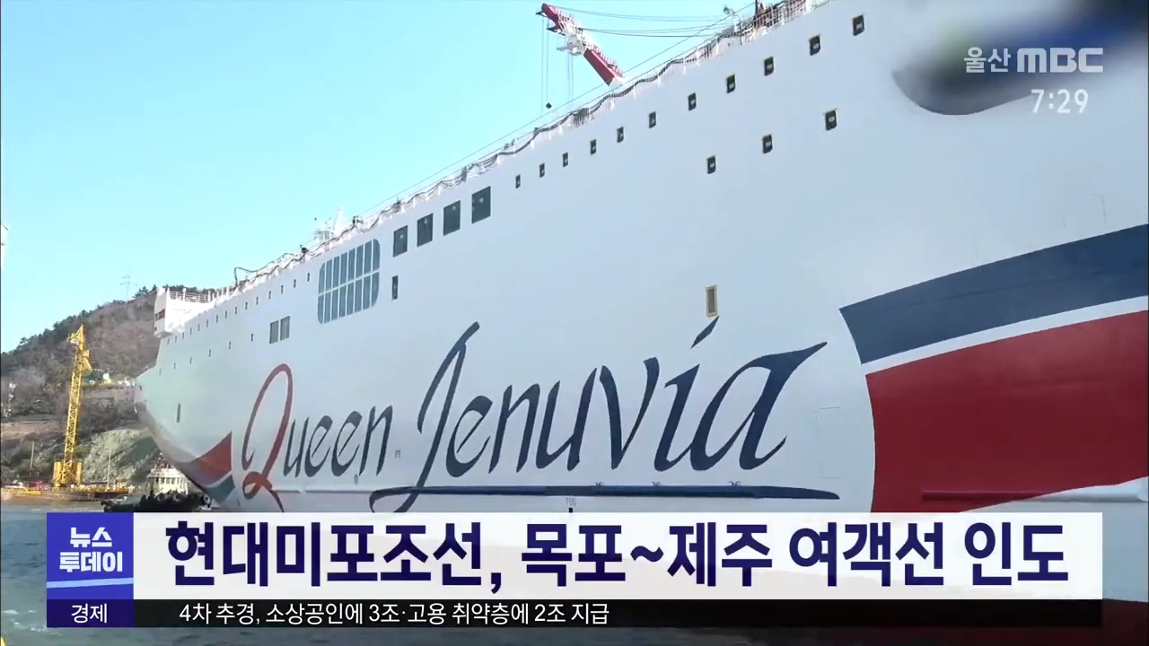 현대미포조선이 오늘(9/8) 목포~제주 항로에
