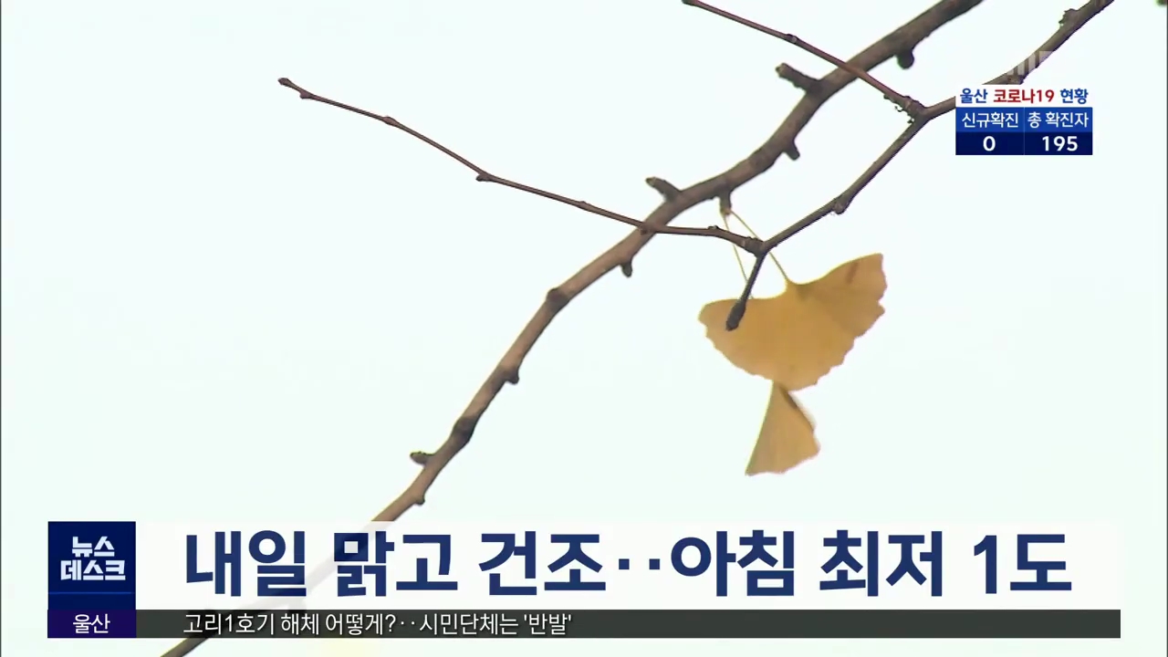 울산지방은 오늘(11/28) 대체로 맑은 가운데